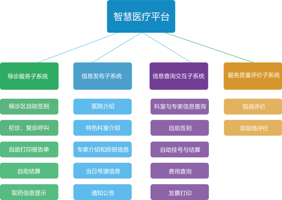 信息查詢交互子(zǐ)系統可(kě)以實現(xiàn)科(kē)室與專™π>家(jiā)信息查詢、自(zì)助簽到(dào)、自<Ω(zì)助挂号、結算(suàn)、費(fèi)用(yòn • g)查詢、發票(piào)打印、自(zì)助取報(bào)告單↑← 等功能(néng)。